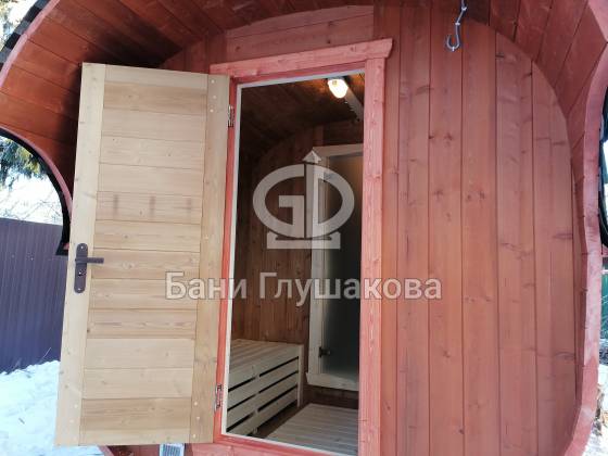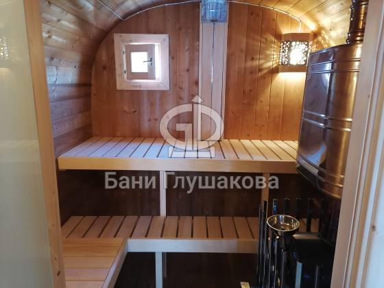 Материал корпуса: Термодерево — это экологичность и долговечность. Оно не боится перепадов влажности и обладает низким коэффициентом теплопроводности, что позволяет бане прогреваться быстрее.