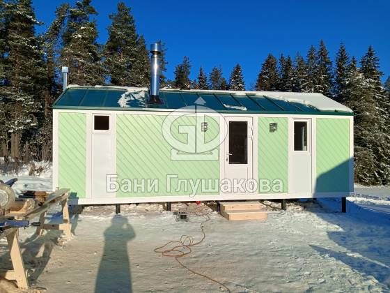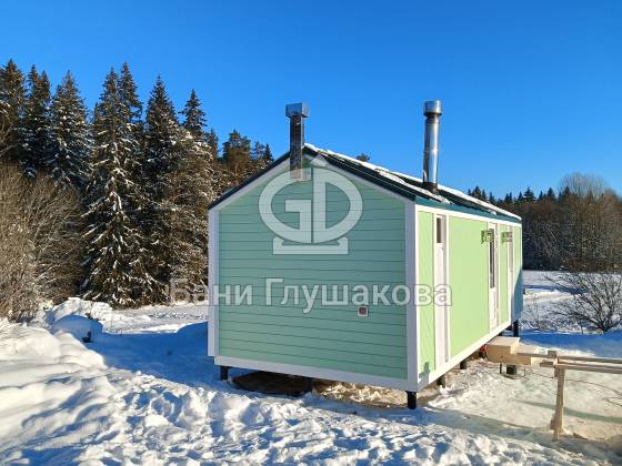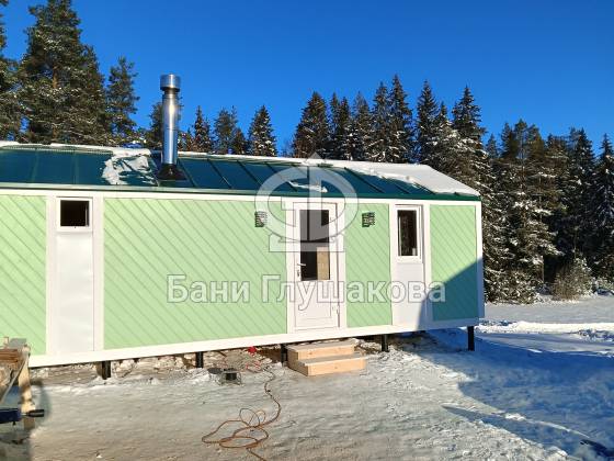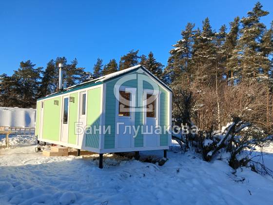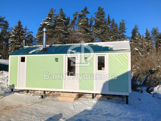 Баня «Барнхаус» в нежно-зелёном цвете