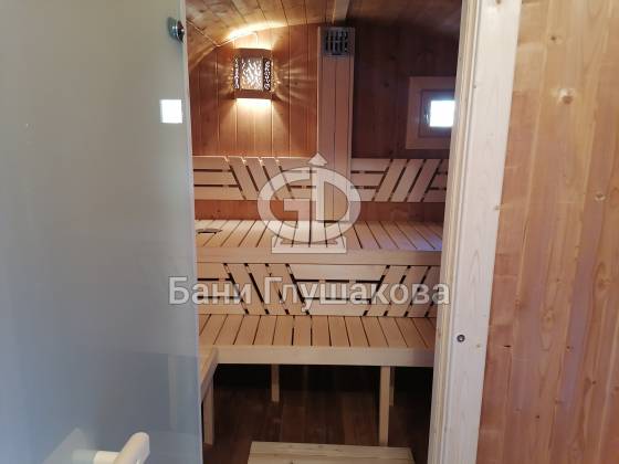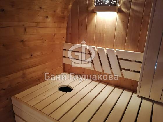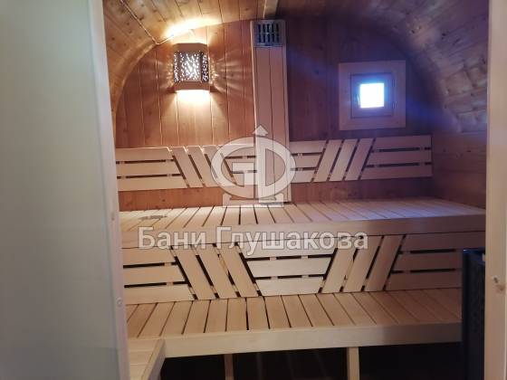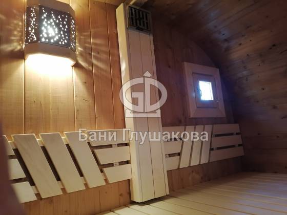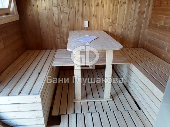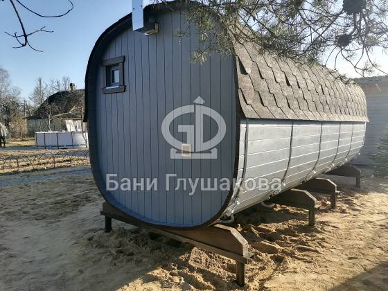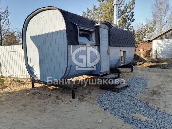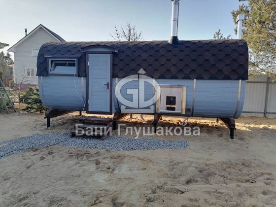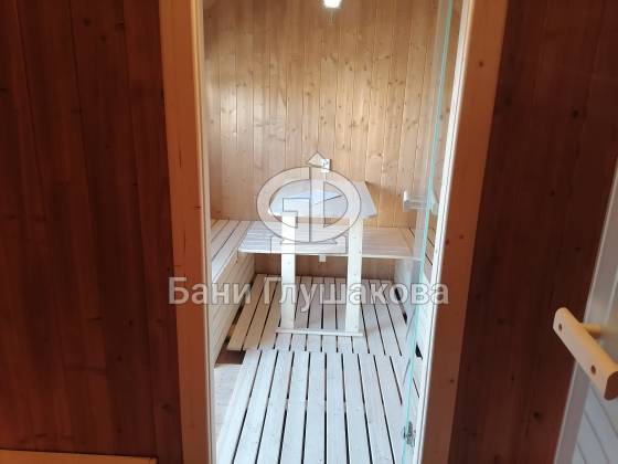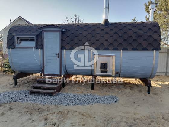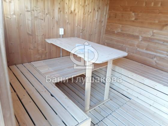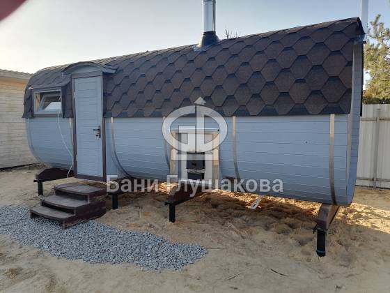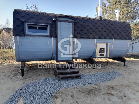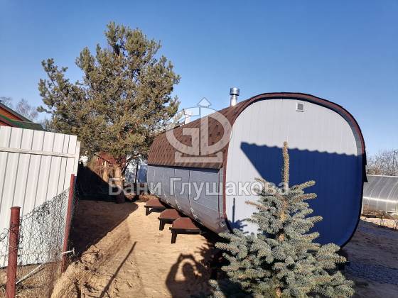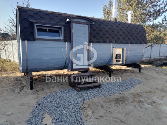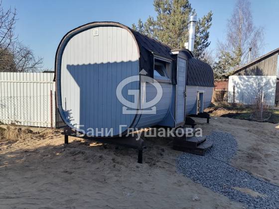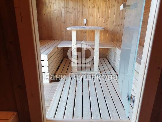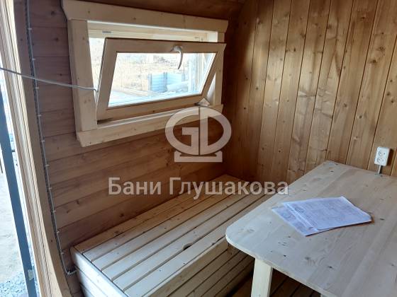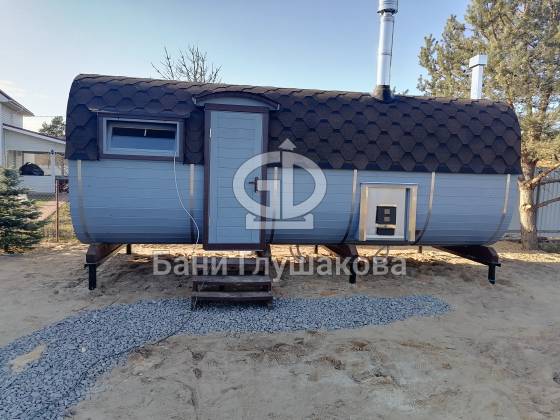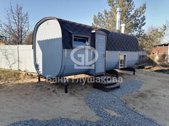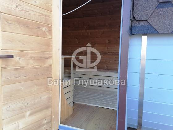 Оцените стильное исполнение нашей бани-квадробочки! Перед вами просторная модель из термодоски размером 2,4 на 5,9 метра.