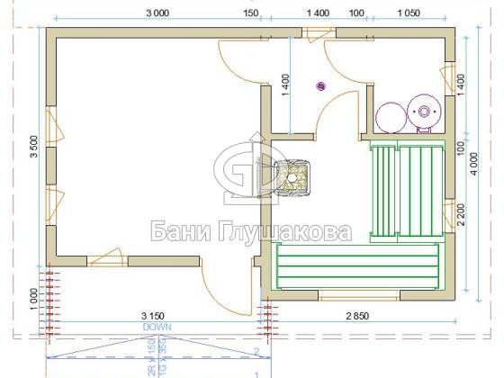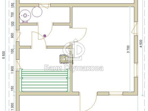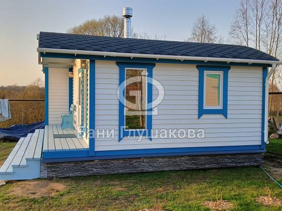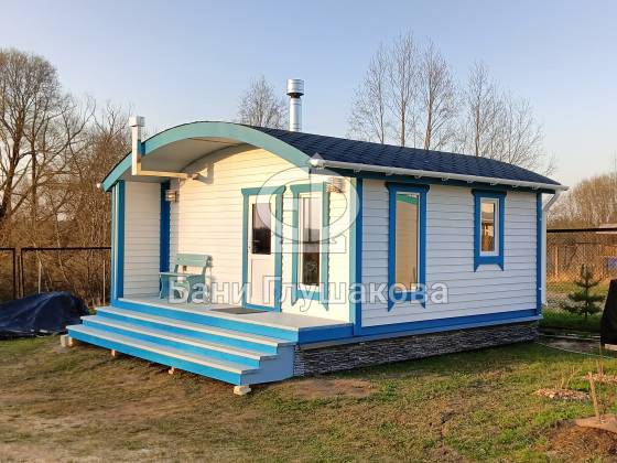 Баня «Бурже» 4х5,3м с террасой и дровяником