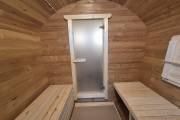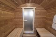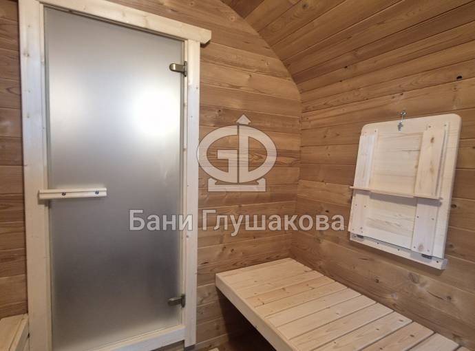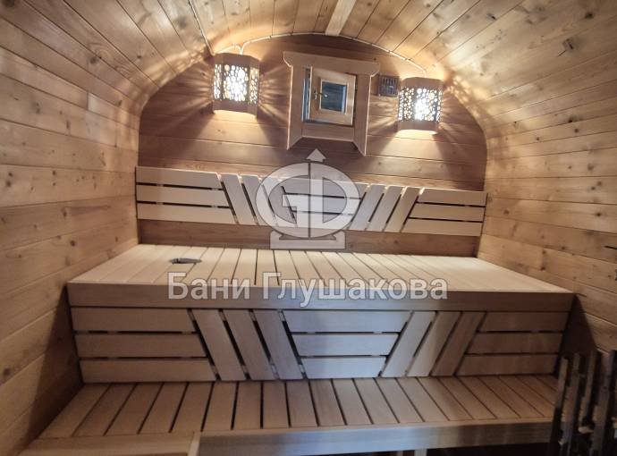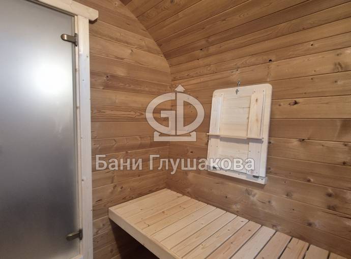 Размер — 2,4 × 4 метра, внутри — два продуманных помещения: комната отдыха и парная. Всё, как нужно, без лишнего.