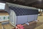 Баня изготавливается из термодоски. Размер 2,4 на 4 метра, внутри 2 помещения: комната отдыха и парная.
