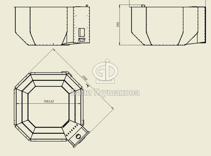 Банный чан 8 граней со встроенной печью "Малый" неокрашенный №2