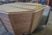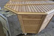 Отделка выполнена из термодревесины, устойчивой к влаге и солнцу. При желании можно покрасить в любой цвет, чтобы идеально вписать чан в дизайн участка.