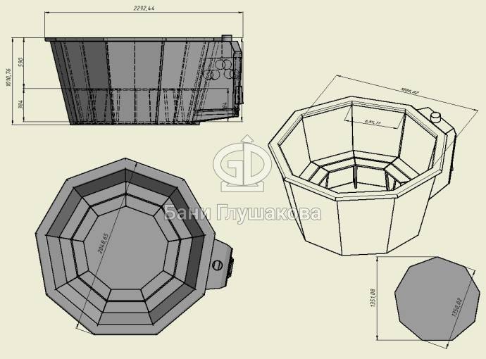 Стальной банный чан 9 граней со встроенной печью