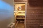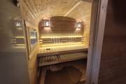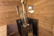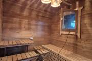 Предбанник размером 2,3 × 3 метра служит переходной зоной между улицей и комнатой отдыха: здесь можно снять обувь и верхнюю одежду, не занося влагу и грязь внутрь. Также это отличное место для хранения аксессуаров, дров и банных принадлежностей.
