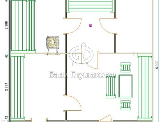Парную — с традиционной печью, обеспечивающей мягкий и стабильный пар.