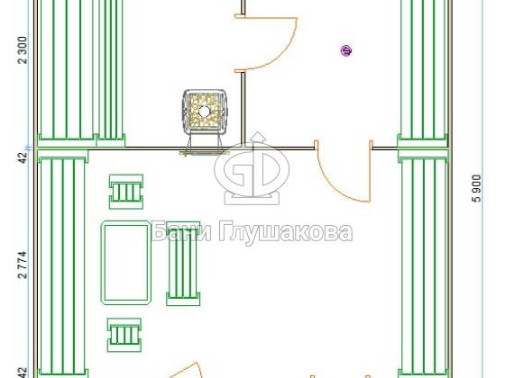 Такое зонирование делает баню максимально функциональной, а при желании заказчика возможно добавить террасу или увеличить комнату отдыха.