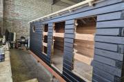 Размер 2,2х6 метров. Внутри 3 помещения: комната отдыха, помывочная и душ. Комплектация топ: обливное устройство «Обливасту», вентиляция «Второе дыхание» и «Димасту», металлический экран вокруг печи и удобные клапаны-задвижки. В общем, эта банька собрала в себе все наши последние улучшалки.