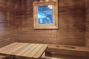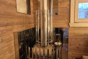 3. Большая парная: «Сердце» бани. Здесь установлена мощная печь ГИД 4, которая быстро прогревает помещение до нужной температуры и обеспечивает густой, качественный пар. Парная укомплектована удобными полками, позволяющими комфортно разместиться нескольким людям.