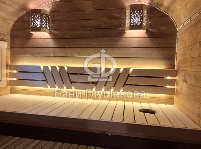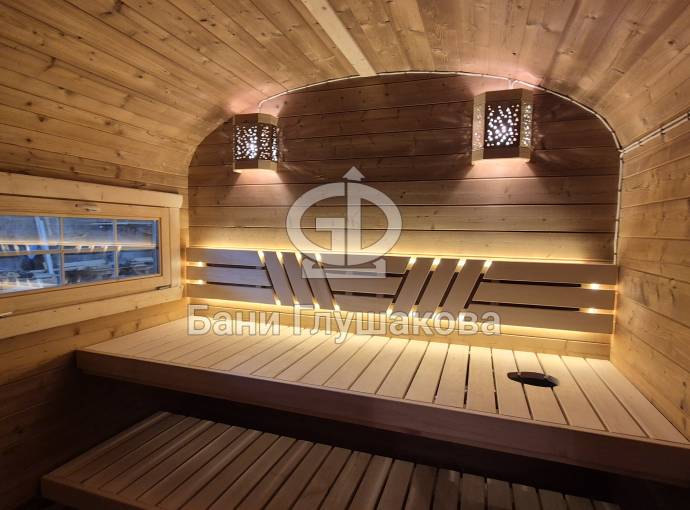 • Материал корпуса: Баня изготовлена из термированной бочковой доски. Применение термодерева гарантирует стабильность геометрии конструкции, устойчивость к гниению и вредителям, а также придает древесине благородный оттенок и приятный аромат.