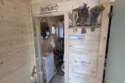 При входе сделан тамбур: разуться, повесить верхнюю одежду. К тому же это хороший тепловой буфер — в комнате отдыха будет теплее.