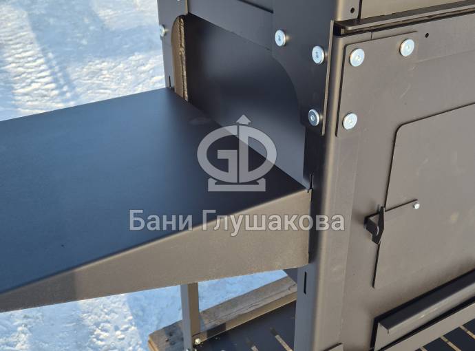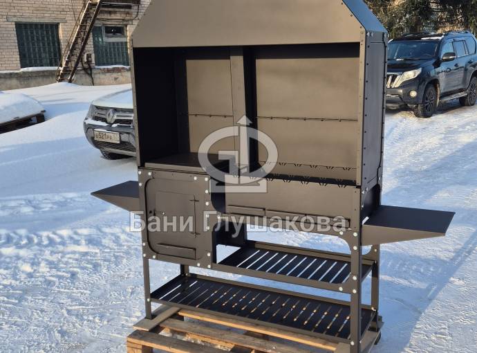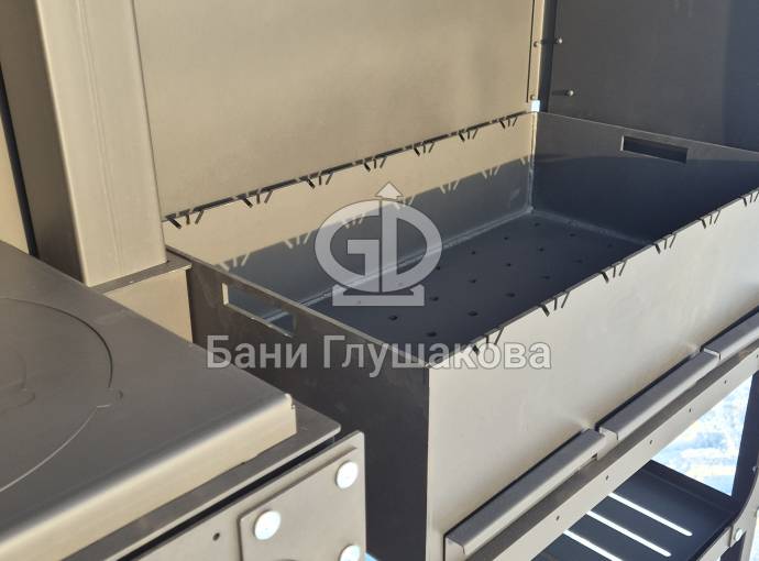 Продуманная эргономика: Мы предусмотрели боковые столики для посуды и специй, а также вместительную нижнюю полку для хранения дров и угля. Всё необходимое всегда под рукой.