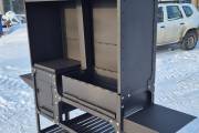 Мангал с печью «два в одном»: С левой стороны расположена полноценная варочная поверхность с конфорками разного диаметра. Это идеальный мангал под казан, где можно точно регулировать интенсивность жара для правильного томления блюд.