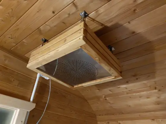 Баня оснащается автономной душевой системой (водопровод не обязателен!).